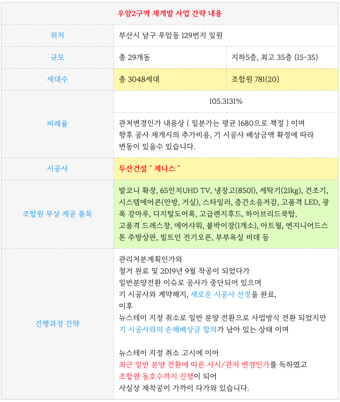 - 우암2구역은 계속 일반분양 전환이 다소 지연된 것에 이어 기