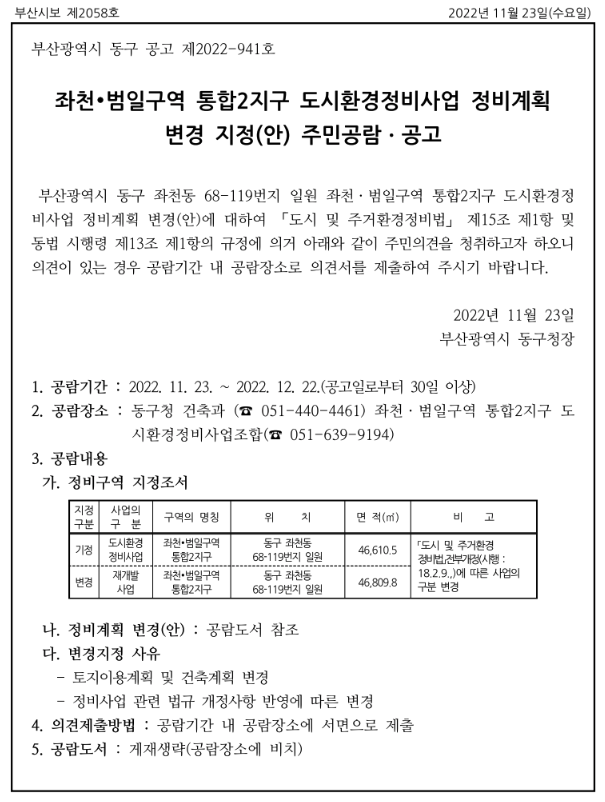 정비계획 변경 변경에 대한 주민 공람 공고를 실시하고 있습니다.