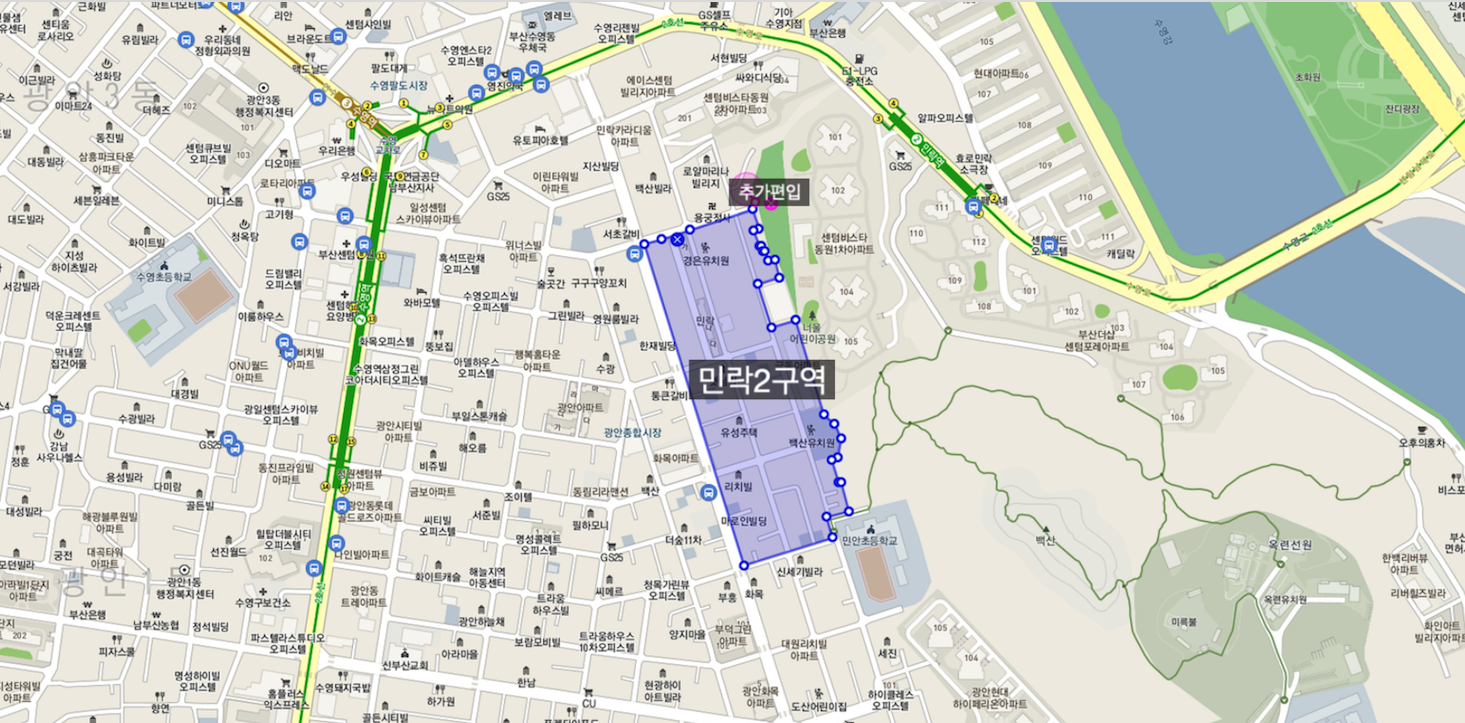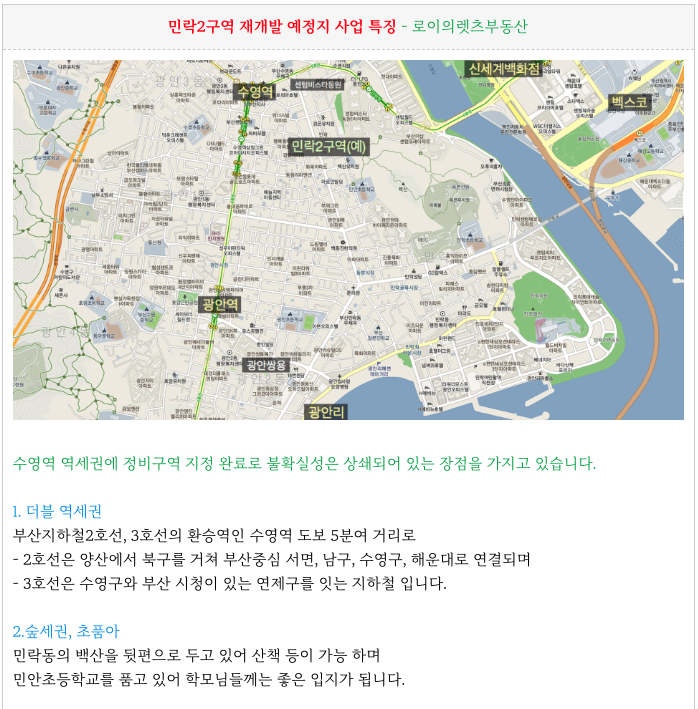 수영구 민락2구역 재개발 : 급 부속토지, 원룸물건 + 구역지정>조합설립중