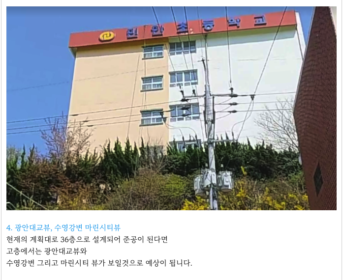 고층에서 보면 광안대교가 조망이 될 것으로 예상이 되는데 아래 부분도 참조 해보시면 좋습니다.