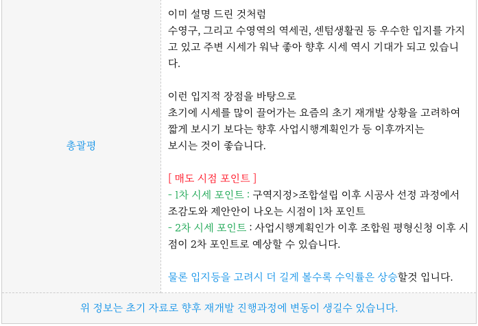 구역 지정까지 진행이 되어 상대적으로 분명히 불확실성이 상쇄되어 진행이 되고 있는 곳입니다.