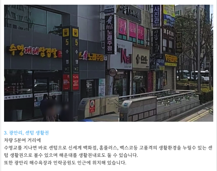 수영로를 거쳐 차량 3~5분여이면 센팀지구로의 접근 가능하여