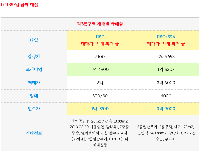 괴정5구역 재개발 급매 118C 매매가 2억