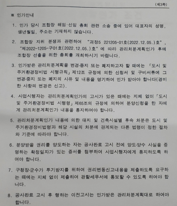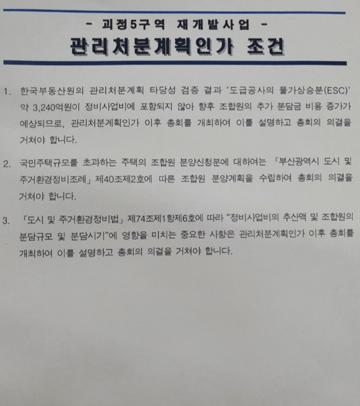 관리 처분계획인가시에 부족했던 부분들과 함께 조합원들의 요구사항을 받아 추가 적인 보완이