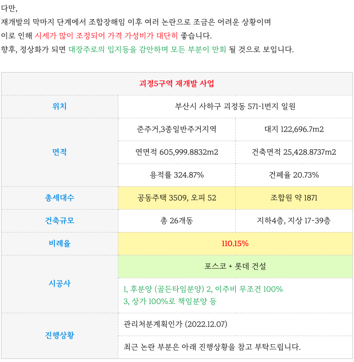 안녕하세요. 로이의렛츠부동산 ( 제이에이케이 부산 부동산중개법인 ) 입니다. 오늘은 괴정5구역 재개발 은...