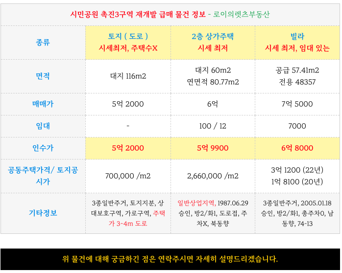 시민공원 촉진3구역 재개발 최저 토지 및 상가주택 매물 등 소개해 드리겠습니다.
