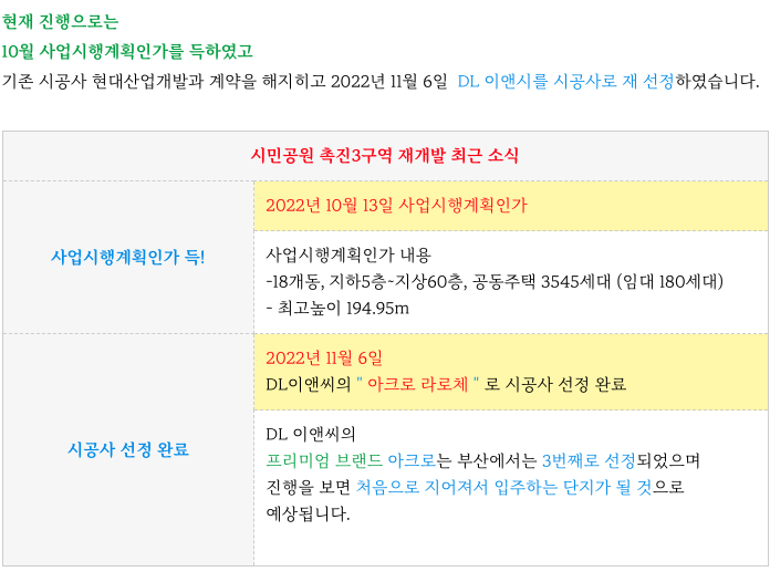 촉진3구역 재개발의 시공사 DL이엔씨 제안 내용을 간략히 정리 드립니다.