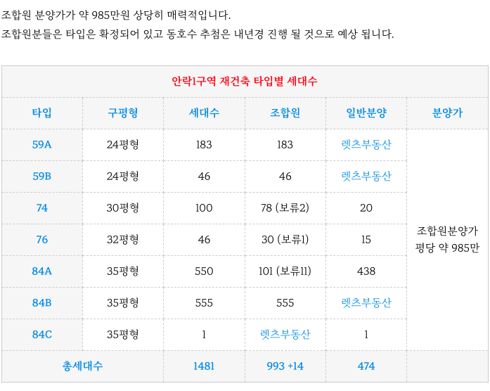 동래구 안락1구역 재건축 84타입 84타입 피 1.5억매물등 소개해 드립니다.