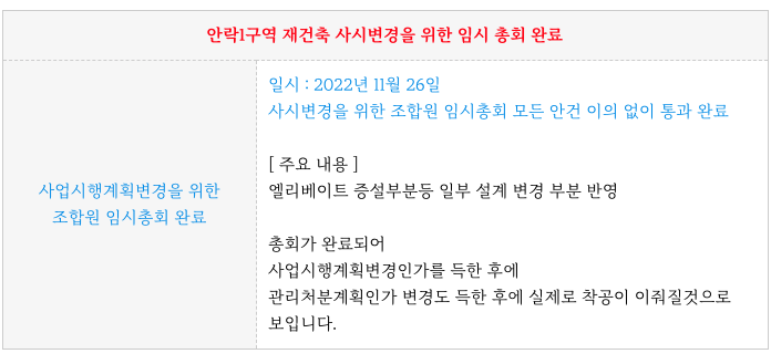 최근 사업시행계획 변경을 위한 조합원 임시총회를 진행하였습니다.