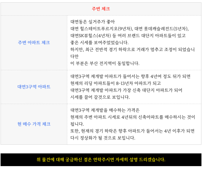 안녕하세요. 로이의렛츠부동산 ( 제이에이케이부산부동산중개법인 ) 입니다. 오늘은 대연동 대단지 대연3구...