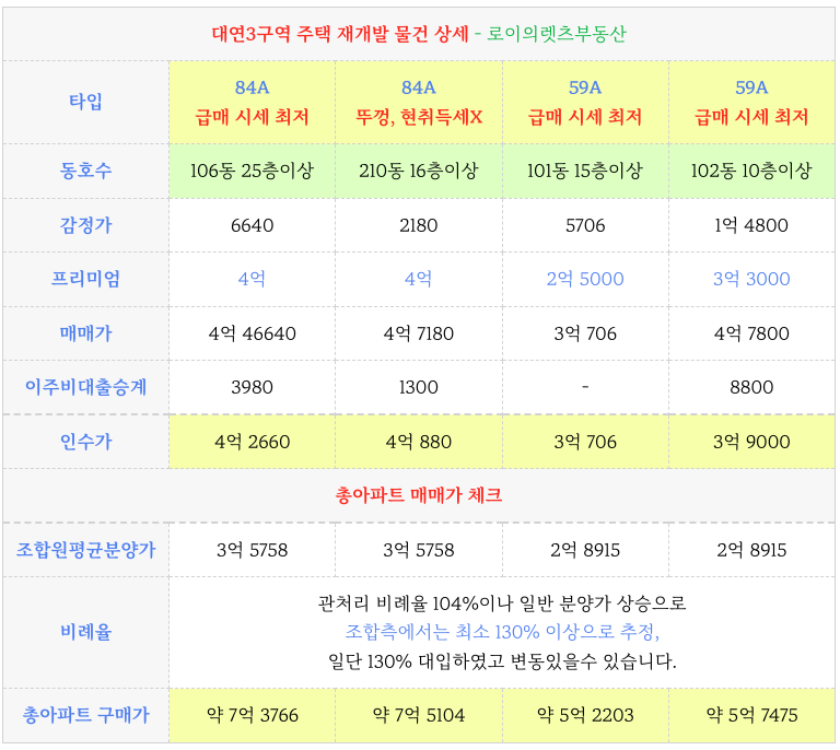 대연3구역 재개발 급매 물건 ( 84타입, 59 타입 ) 소개해 드리겠습니다.