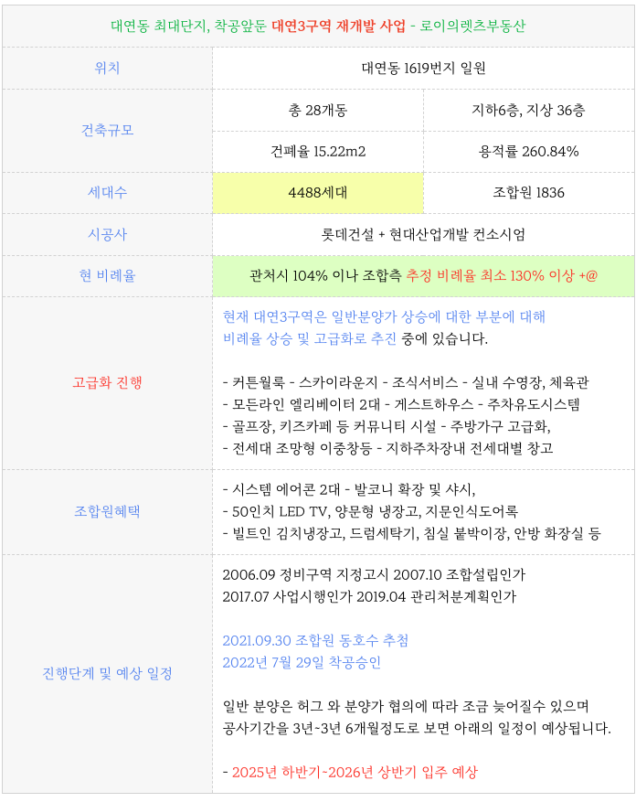대연3구역 재개발 간략한 특징 정리 해드립니다.