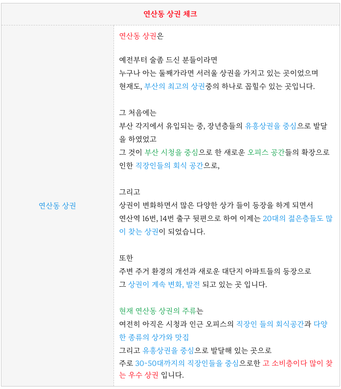 부산 최고의 상권중 하나인 연산동 연산로터리 연산역 초역세권 에 위치하고 있어