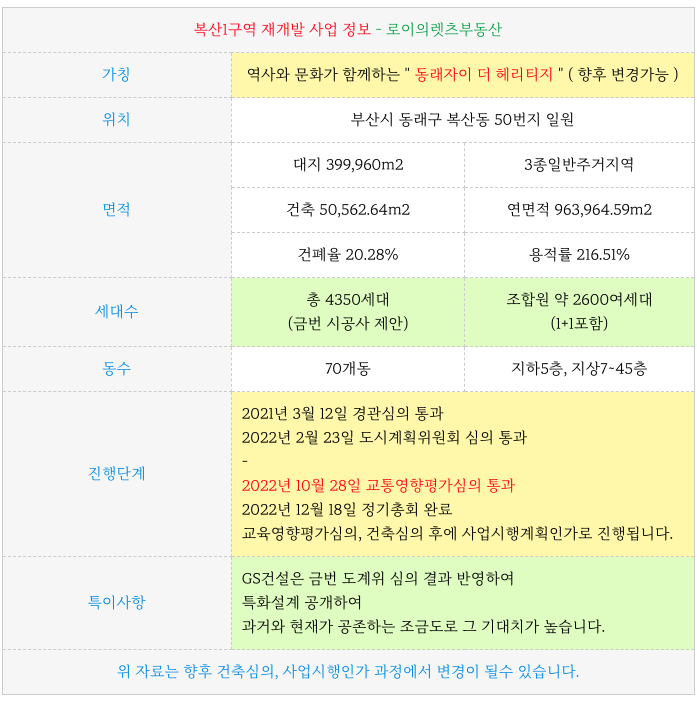 동래구 복산1구역 재개발 의 특징을 다시 한번 간략히 정리하였습니다.
