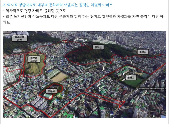문화재와 함께하는 아파트가 조성이 된다는 것이 가장 큰 특징으로