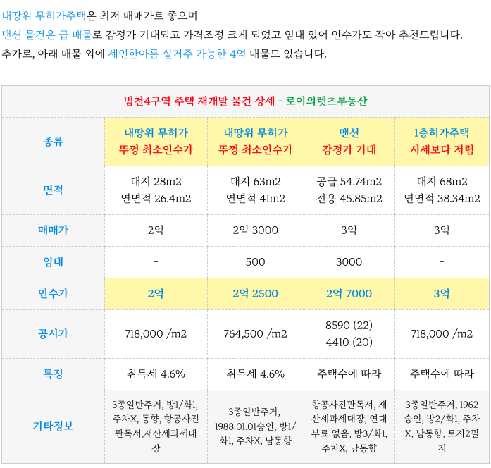 범천4구역 재개발 2억 주택 소액 매물