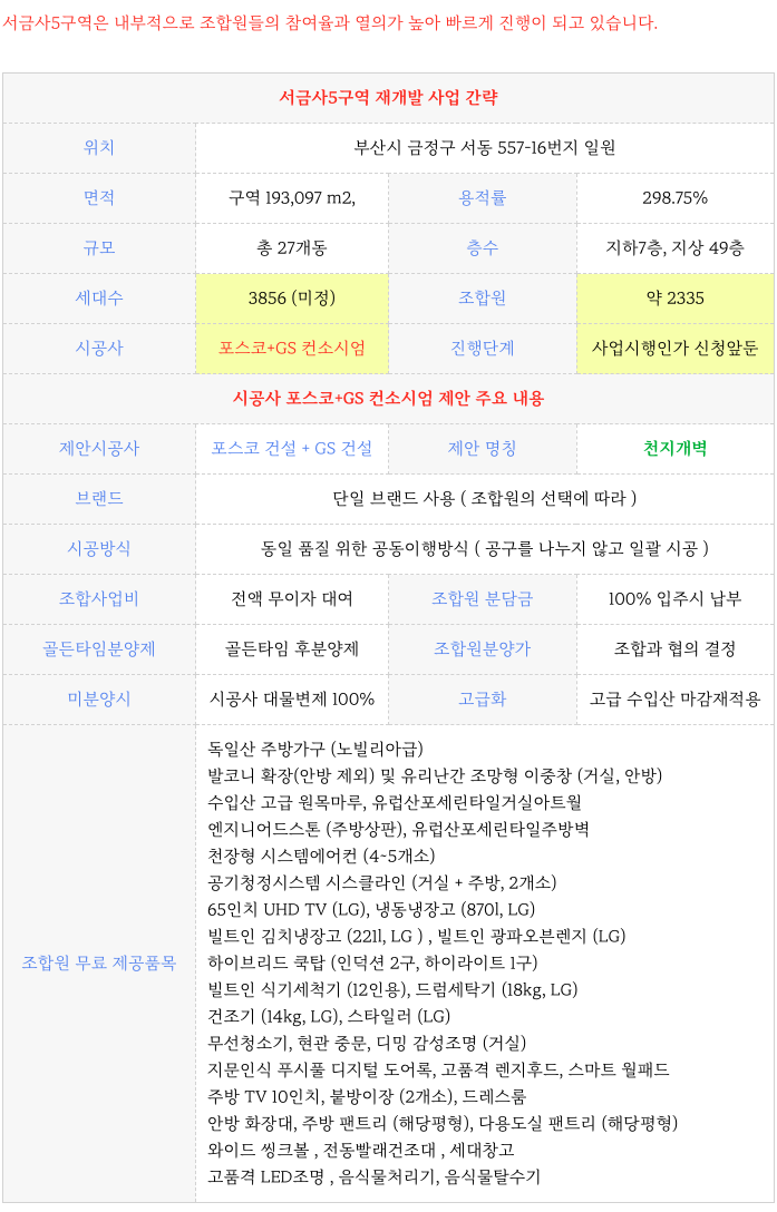 서금사5구역 재개발의 특징을 다시 한번 정리해 드립니다.