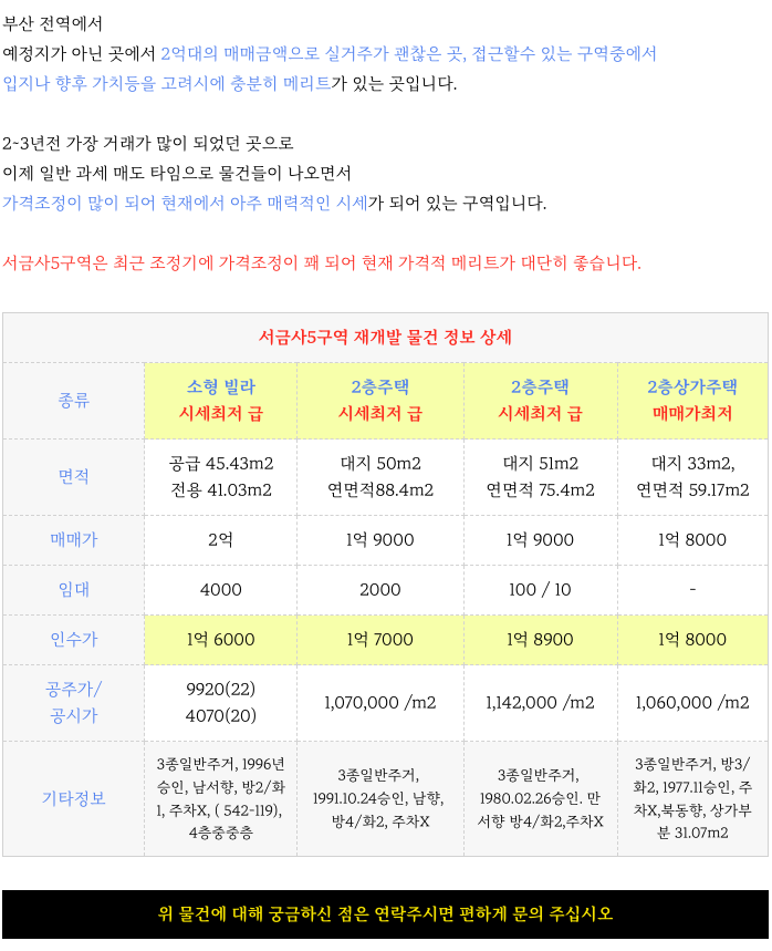 사시신청앞둔 " 서금사5구역 재개발 1.5 인수가 주택 " & 진행 소식