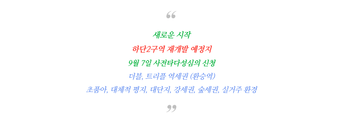 하단역을 도보 이용가능한 역세권으로 약 2000여세대의 대단지로 예정하고 있으며