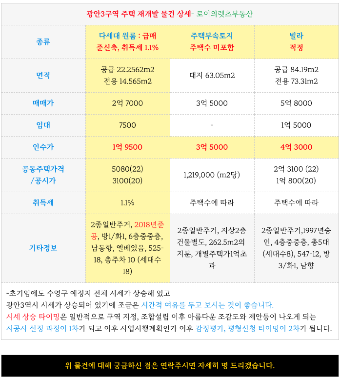 광안3구역 재개발 예정지 현 최저 물건 정보를 소개해 드리겠습니다.