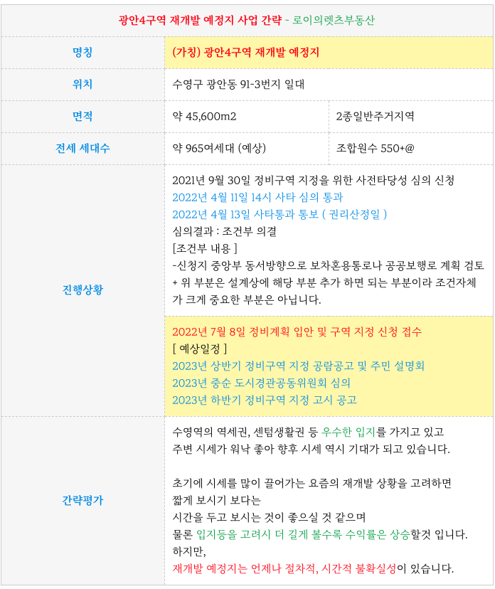 광안4구역 재개발 예정지의 특징을 다시 한번 정리 하였습니다.