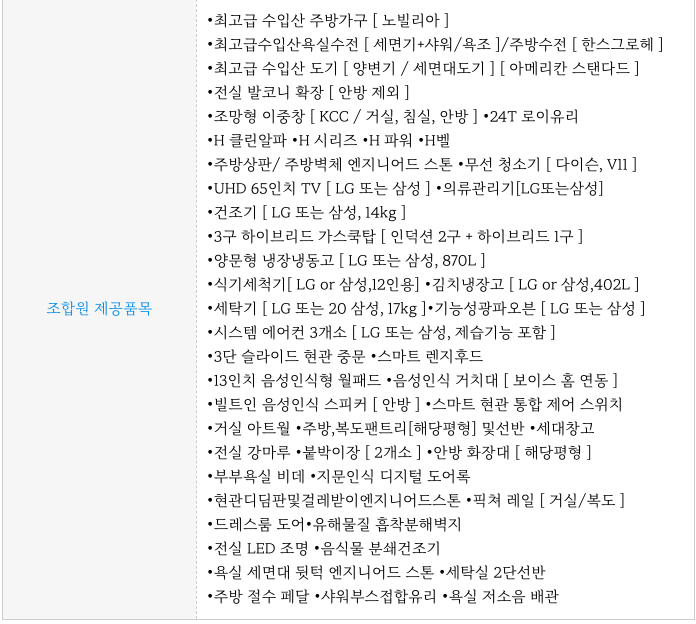 -조합원 분들은 그저 다른 가구 없이 입주해도 될 정도로 다양하고 많은 무상 품목이 제공 됩니다.