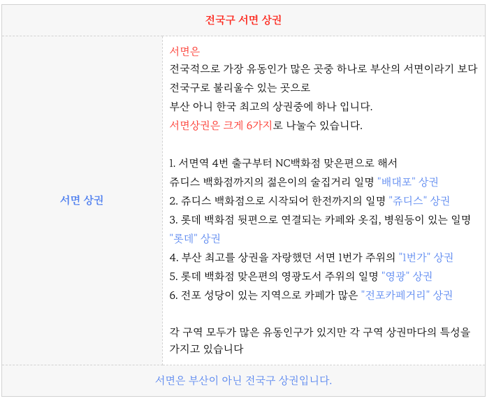 간략히 서면 상권 배치에 대해서 정리드립니다.
