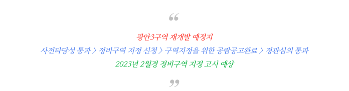 광안3구역 재개발 예정지의 아직 초기이지만 현재까지의 진행상황등은 아래 페이지를 참고 부탁드립니다.