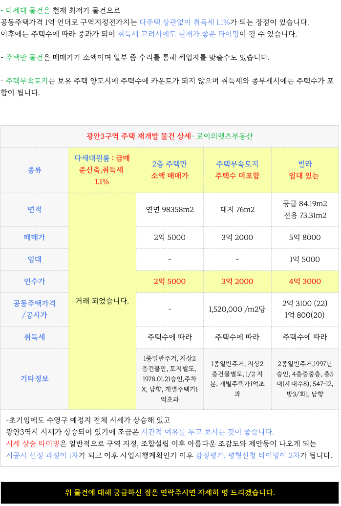 주민설명회 "광안3구역 재개발" : 최저 다세대, 부속토지, 빌라등 ( 최저 인수가 )