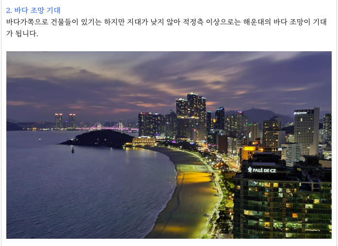 아름다운 해운대 바다 조망 역시 기대가 되며