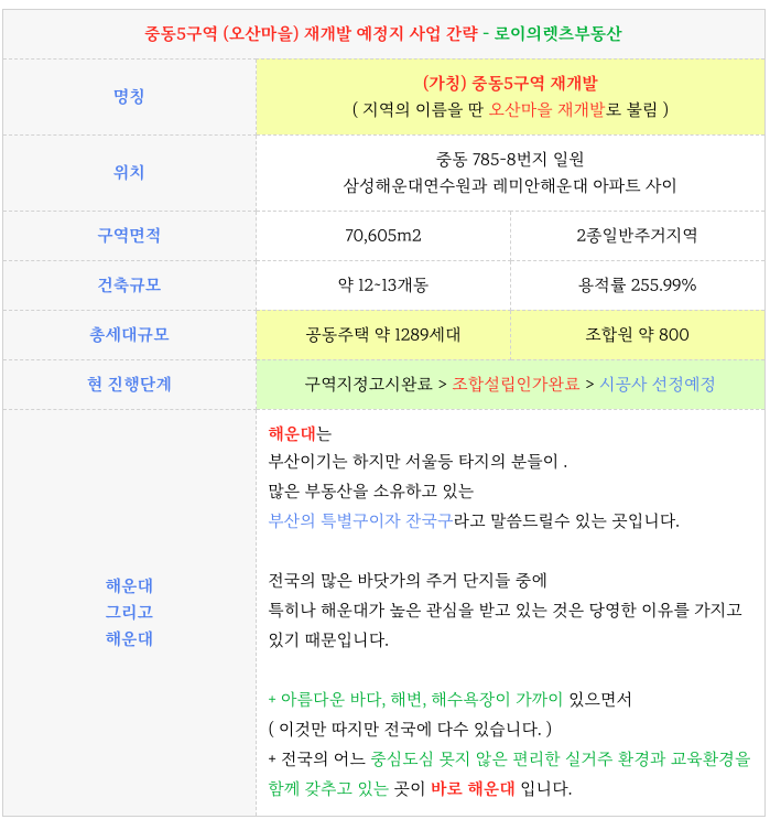해운대 중동5구역 재개발 조합설립인가 소식 & 가격조정된 매물 소개 (오산마을)