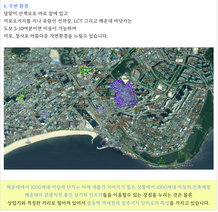 - 바다조망기대, 지하철 도보이용 (준역세권), 좋은 주거환경, 아름다운 달맞이
