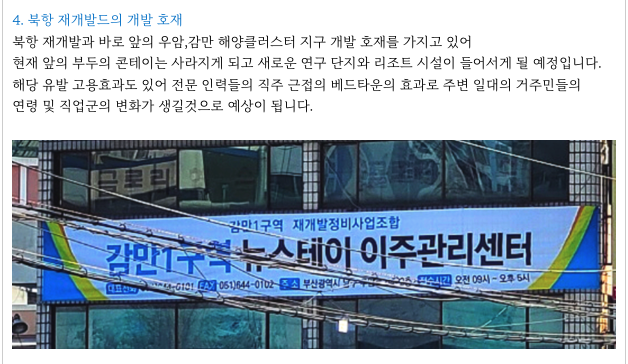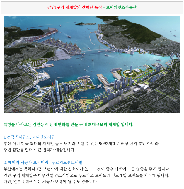 감만1구역 재개발의 특징을 다시 한번 간략히 정리드리겠습니다.