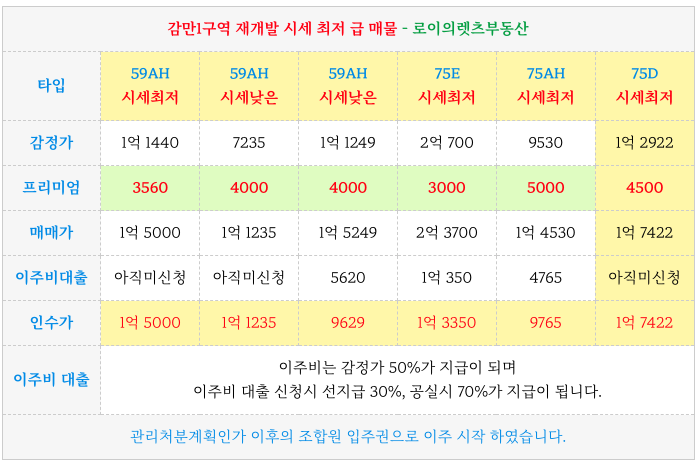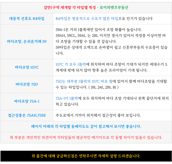 감만1구역 재개발 각 타입별 매물(~p3000부터)