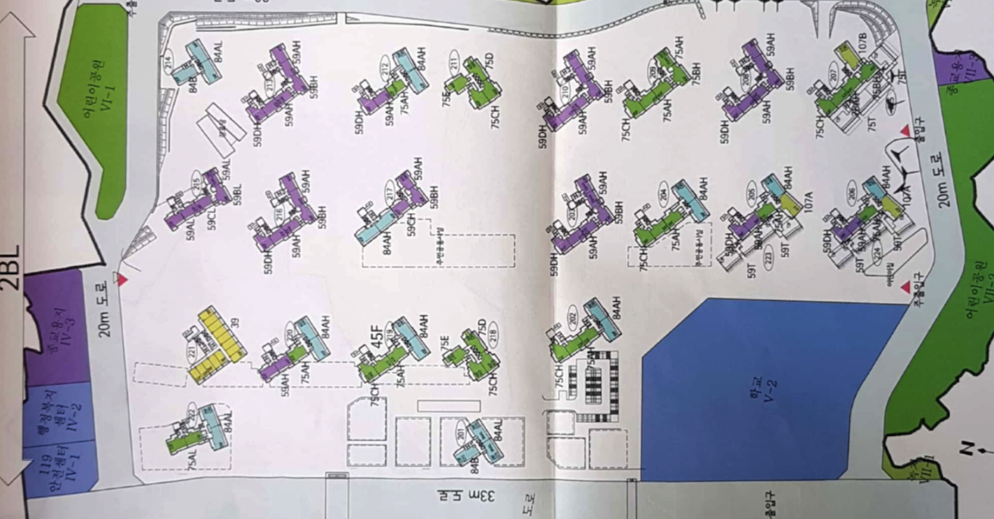 단지가 큰 만큼 그 타입 역시 다양합니다만 각 배치도를 보며 59, 75, 84, 107로 이해하시면 됩니다.