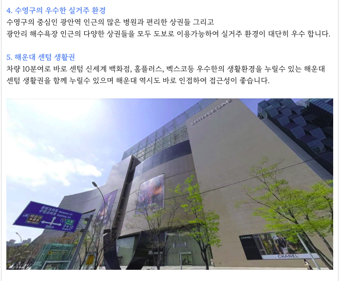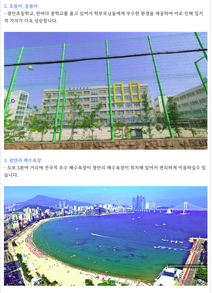 - 수영구 중심 광안동, 광안리 해수욕장, 주변시세 높은