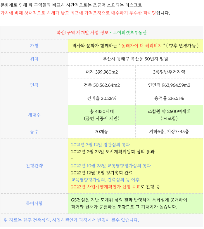 동래구 복산1구역 재개발 의 특징을 다시 한번 간략히 정리하였습니다.