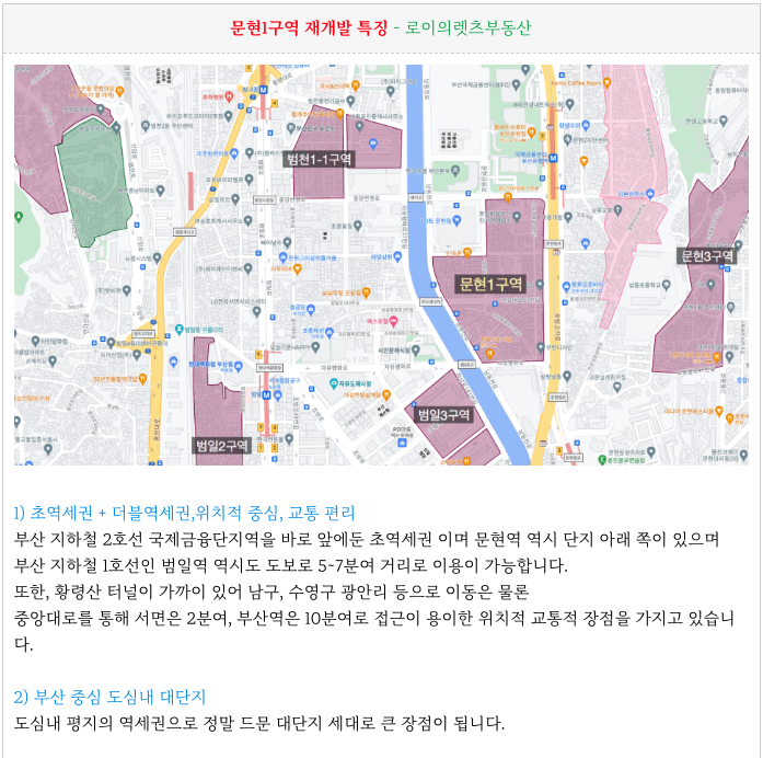 문현1구역 재개발 의 간략한 특징입니다.