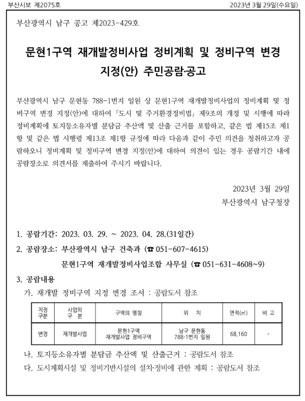 문현1구역 재개발 은 진행과정을 정리등 추가 정보는 아래 페이지를 참고 부탁드립니다.