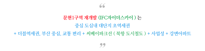 - 초역세권, 더블역세권, 부산중심, 대단지, 평지, 좋은 사업성
