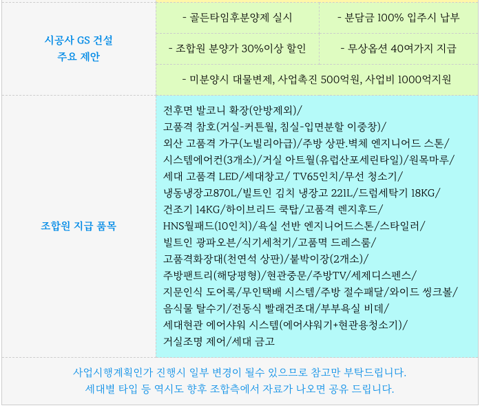 시공사로 선정된 GS건설의 제안 역시도 조합원 분들에게 더 없이 좋은 혜택이 되고 있습니다.