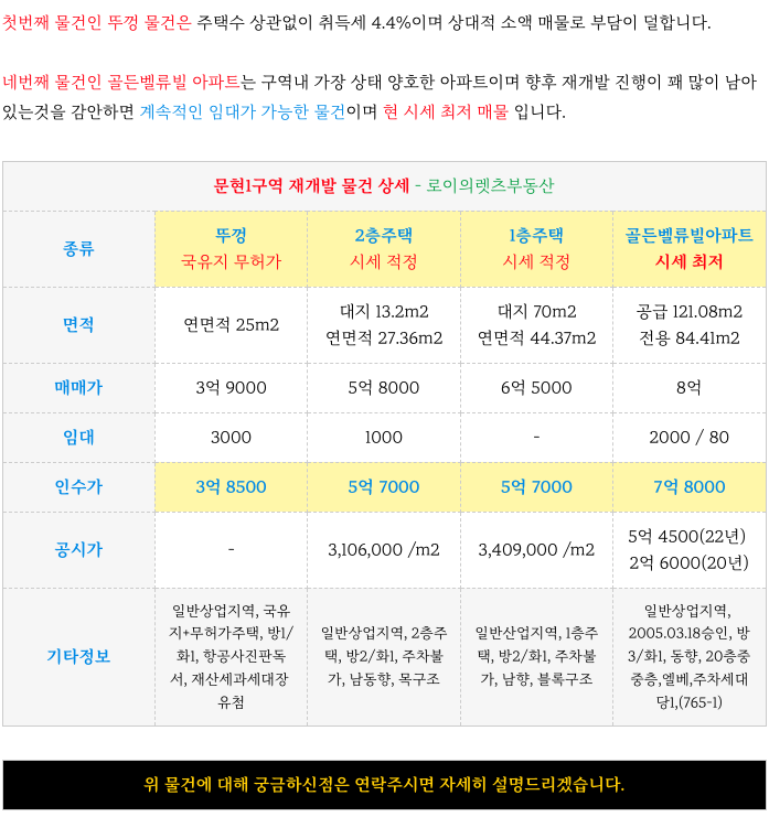 문현1구역 재개발 매물들 소개 해드리고 이어서 구역설명 드리겠습니다.
