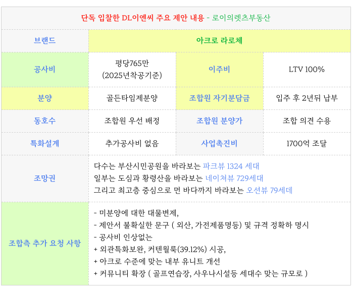 새로운 시공사로 선정된 DL이엔씨 제안 내용을 간략히 정리 드립니다.