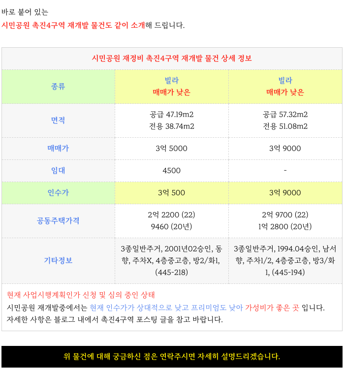 내륙대장 촉진3구역 재개발 관처총회준비 & 각 타입별 매물 정보