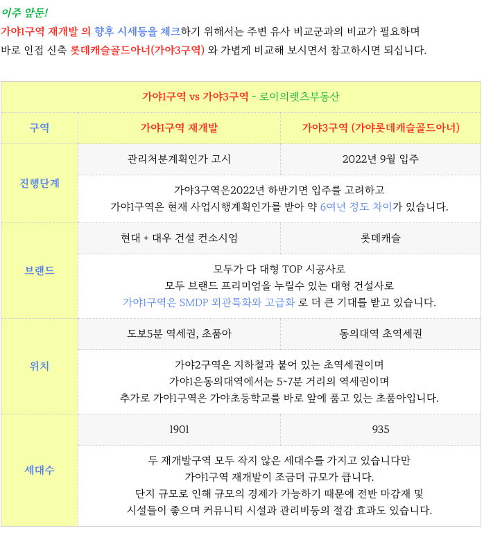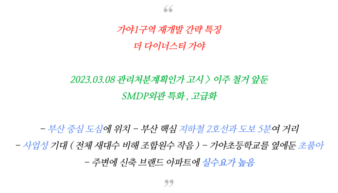가야1구역 재개발 의 특징을 간략히 정리 해드립니다.