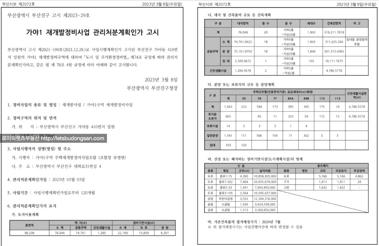이주 앞둔! 가야1구역 재개발 현 진행상황과 & 84, 110, 84+59타입 매물을 소개해 드리겠습니다.