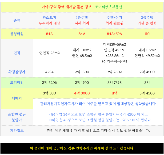 가야1구역 재개발 84A, 110타입, 84+59 물건 소개 해 드리겠습니다.
