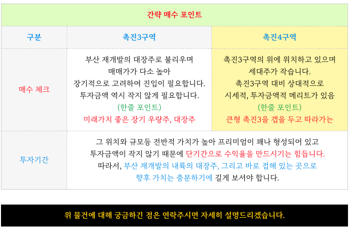 내륙의 대장주 촉진3구역과 맞붙어 있어 시세는 함께 움직일것으로 예상이 되기에