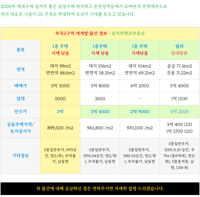 부곡2구역 재개발 상대적 소액 매물등 소개 해드리겠습니다.