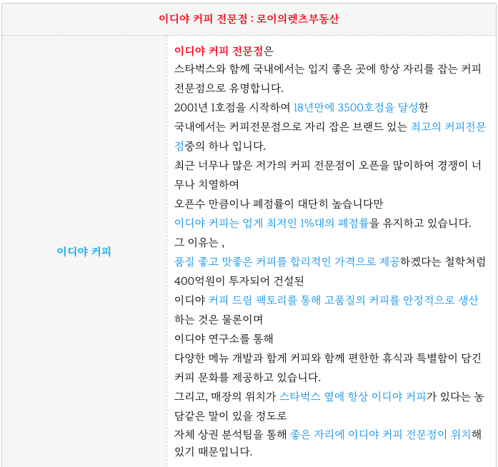 2) 이디야 양도 양수 물건 하나더 소개해 드립니다.